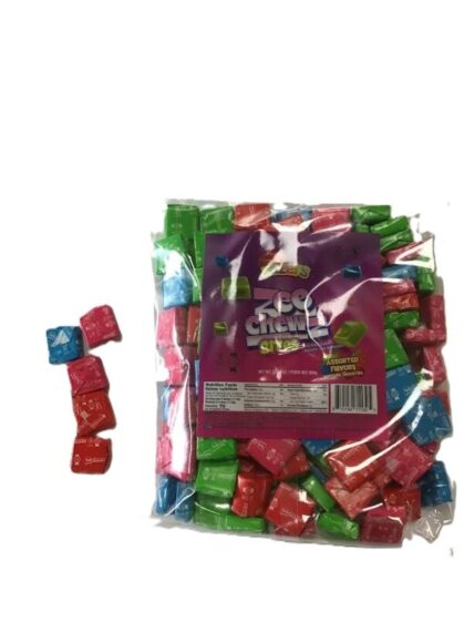 Zee Chewz Bites Assorted Flf (650gr) INGREDIENTS: SUGAR, GLUCOSE SYRUP, HYDROGENATED PALM OIL, PALM OIL, CITRIC ACID, MALIC ACID, ARTIFICIAL FLAVORS, ARTIFICIAL COLORS FD&C RED 40, FD&C YELLOW NO. 5, FD&C BLUE NO. 1, LECITHIN, AND FISH GELATIN. ALLERGEN: CONTAINS FISH.